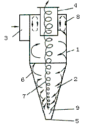 6-外旋流;7-內 旋流;8-二 次流;9-回流區。
