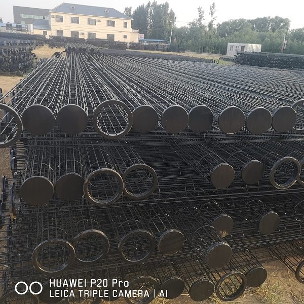 除塵骨架袋籠采用圓型結構,袋籠的縱筋和反撐環分布均勻,并有足夠的強度和剛度,防止損壞和變形(縱筋直徑≥φ4mm 12條,加強反撐環φ4、間距200,φ160×6000),頂部加裝“η”形冷沖壓短管,用于_袋籠的垂直及保護濾袋口在噴吹時的安全。