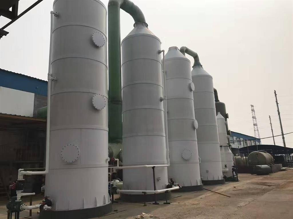 廢氣吸收噴淋塔內部包括填料層、除霧層,底部設有循環水池,循環水池內吸收液通過循環水泵輸送至噴淋層進行噴淋吸收。