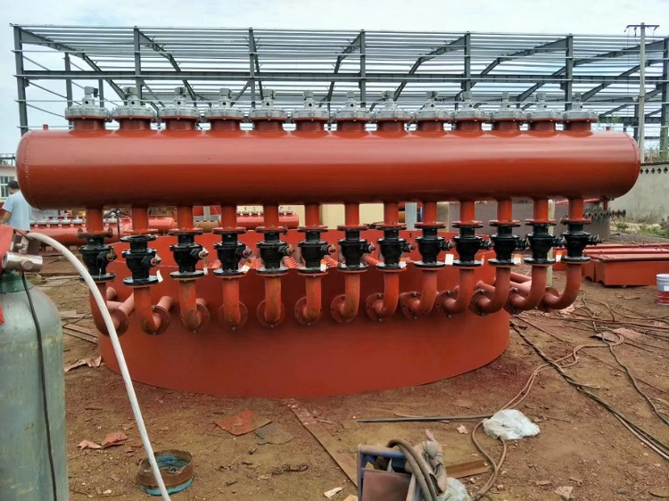 清灰用的噴吹管、噴嘴采用無縫管δ=5mm。噴吹短管(又稱噴嘴)與噴吹管的焊接采用了工裝模具,二氧化碳保護焊接,減少變形,保噴吹短管間的形位公差。噴吹管借助支架固定在上箱體中,并設置了定位銷,采用快速接頭裝置。我們采用的噴嘴有同樣的導流效果但沒有增加設備阻力之憂,清灰能耗省,保射流能量大。