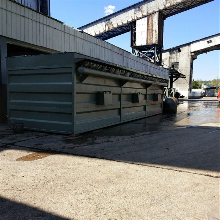 布袋除塵器物料轉(zhuǎn)運(yùn)產(chǎn)生的揚(yáng)塵由除塵罩收集后,經(jīng)管道輸送至緩沖倉(cāng)除塵器集中處理后由排氣筒排出。除塵管道設(shè)置電動(dòng)閥門(mén),與皮帶連鎖控制。除塵灰卸灰采用灰倉(cāng)插板閥+卸灰閥-刮板機(jī)-集灰倉(cāng)方式,按照兩種運(yùn)輸方式設(shè)計(jì)和配置:密閉罐車(chē)輸灰和加蓋自卸車(chē)輸灰。除塵設(shè)備布置在地面上。
