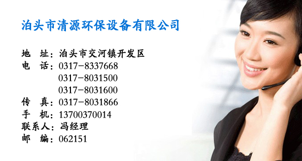 公司名稱:泊頭市清源環(huán)保設(shè)備有限公司 地址:泊頭市交河鎮(zhèn)開發(fā)區(qū) 郵編:062151