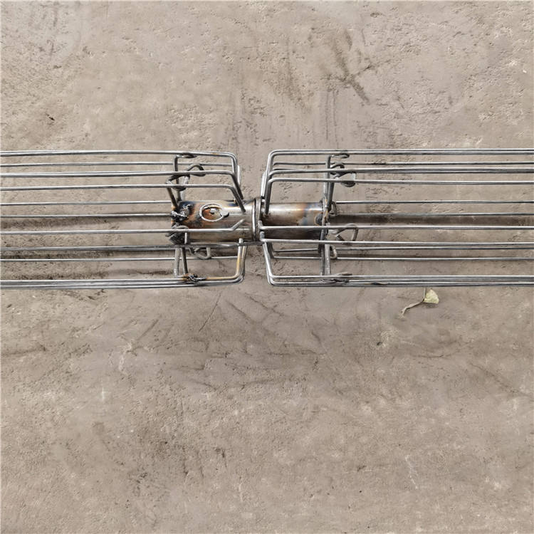 褶皺袋籠采用圓型結(jié)構(gòu),袋籠的縱筋和反撐環(huán)分布均勻,并有足夠的強(qiáng)度和剛度,防止損壞和變形,頂部加裝冷沖壓短管,用于袋籠的垂直及保護(hù)濾袋口在噴吹時(shí)的安全。