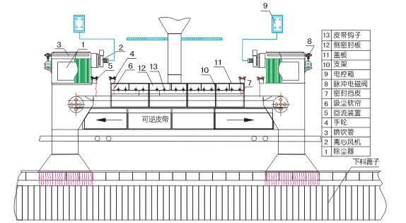 3 、結合_的密封導料槽使用,治塵效力高,不發生_次污染,可自行回收煤粉達到再利用和節約能源的要求。