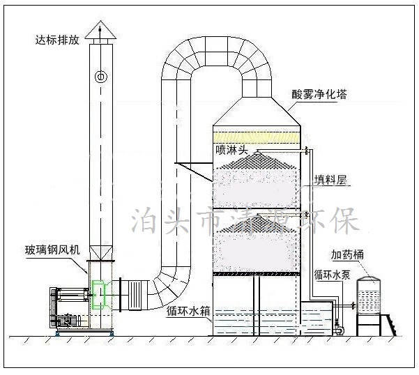 pp洗滌塔處理的主要有害氣體為酸霧(H2S04)、氯化氫(HCL)氣體及氟化氫(HF)氣體、鉻酸霧(CrO3)、氰氫酸(HCN)氣體、硫化氫(H2S)、氨氣(NH3)、堿蒸汽等水溶性氣體。采用氫氧化鈉為吸收中和液、溶液濃度為2-6%,凈化效率均為95%以上。