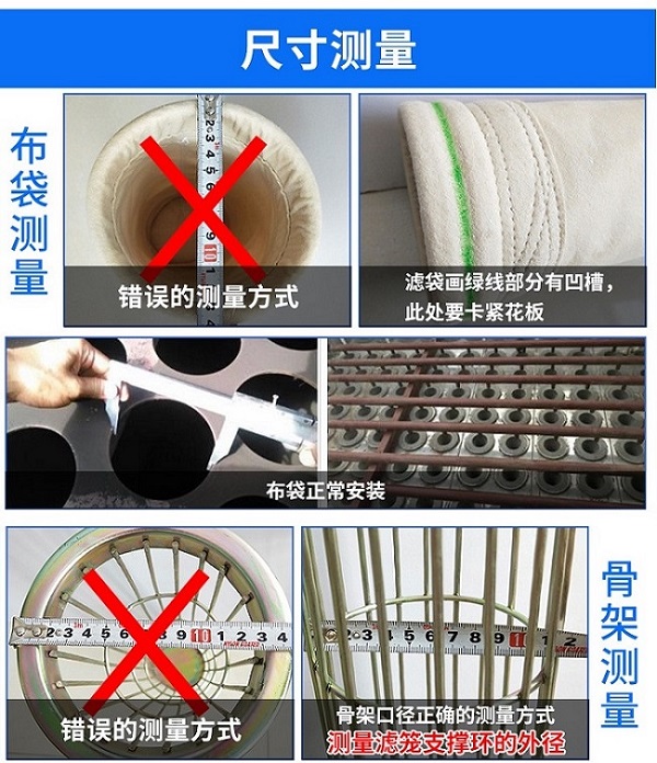 除塵布袋的縱向縫線須牢固,平直且不得少于三條。除塵布袋袋口的環狀縫線須牢固且不得少于二條。除塵布袋防癟環的環狀縫線須牢固且每邊不得少于二條。除塵布袋袋底的環狀縫線允許單線,但須縫制二圈以上。除塵布袋下料長度尺寸偏差為±10mm,除塵布袋的周邊縫制針碼要均勻,袋縱向針碼不得小于15針/10cm,橫向針碼不少于12針/10cm;縫制好的布袋不得有漏洞,損傷缺陷;直徑大于200mm,長度大于5000mm的布袋應做拉伸試驗,其伸長量應符合要求。