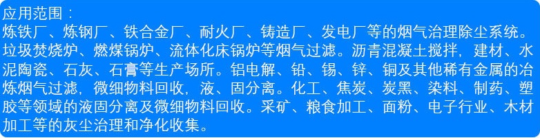 除塵器布袋等。除塵布袋是袋式除塵器運行過程中的關鍵部分,通常圓筒型濾袋垂直地懸掛在除塵器中。
