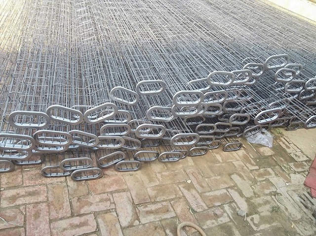 籠式框架由支撐環和縱筋組成,支撐環之間的距離應在150~200mm范圍,可在框架長度內均勻分布,也可在框架二端按排分布后的余數。支撐環線材的直徑應大于縱筋線材的直徑。