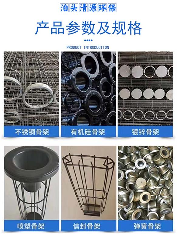 清源環(huán)保公司可以提供各種型號,圓骨架、扁骨架、彈簧骨架、多節(jié)異型骨架,材質(zhì)有_、耐酸堿、碳鋼、鍍鋅、電鍍、不銹鋼等。另備有拉伸文氏管,可根據(jù)用戶要求焊接在籠口上,文氏管、短管、吊口、布袋喉箍等配件,并可按客戶要求制做非標(biāo)準(zhǔn)的籠架。